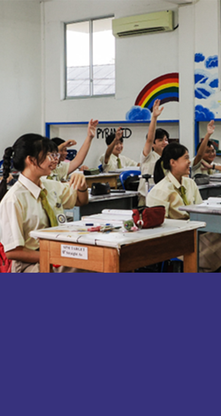 "I learnt a lot not only in academics, but also built up my character and my interest from the activities in the school. I like this school because the students and teachers are helpful, friendly, and kind." - Hoo Ming Zhe, Form 2 student